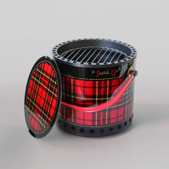- Stylish plaid lid doubles as a serving tray